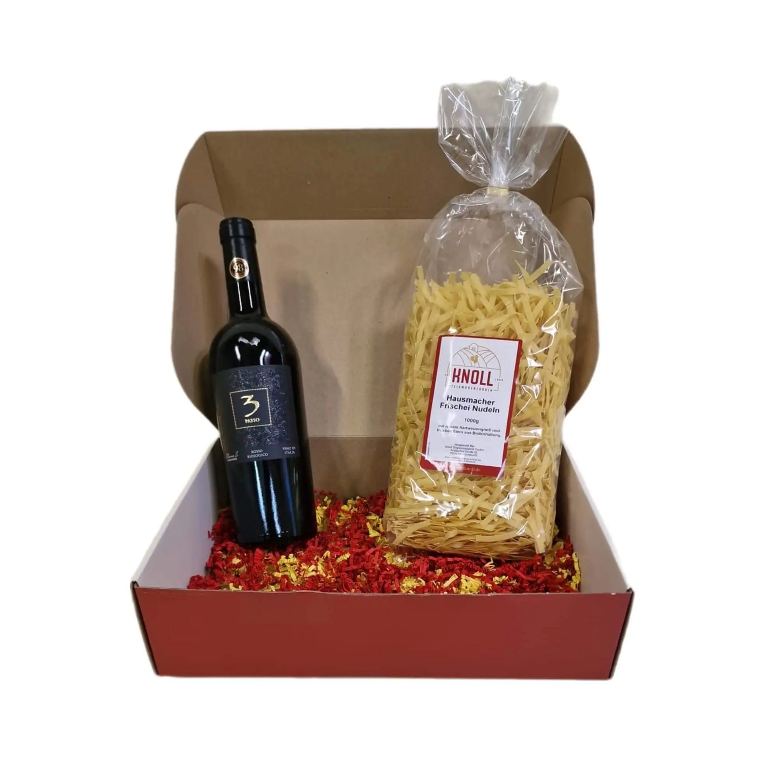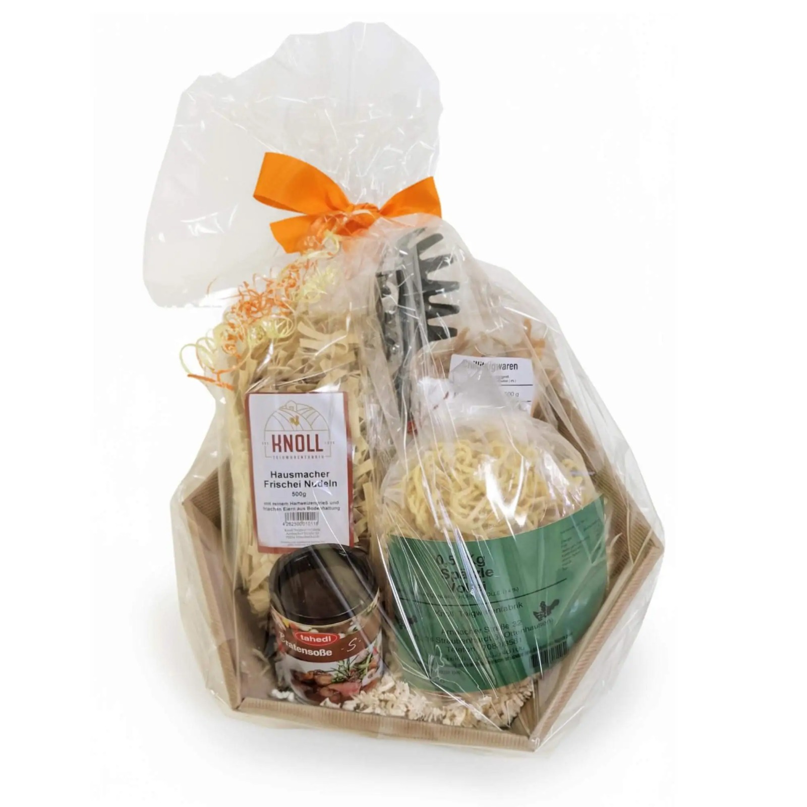 Geschenkkorb mit verschiedenen Knoll Nudeln Verpackungen gefüllt